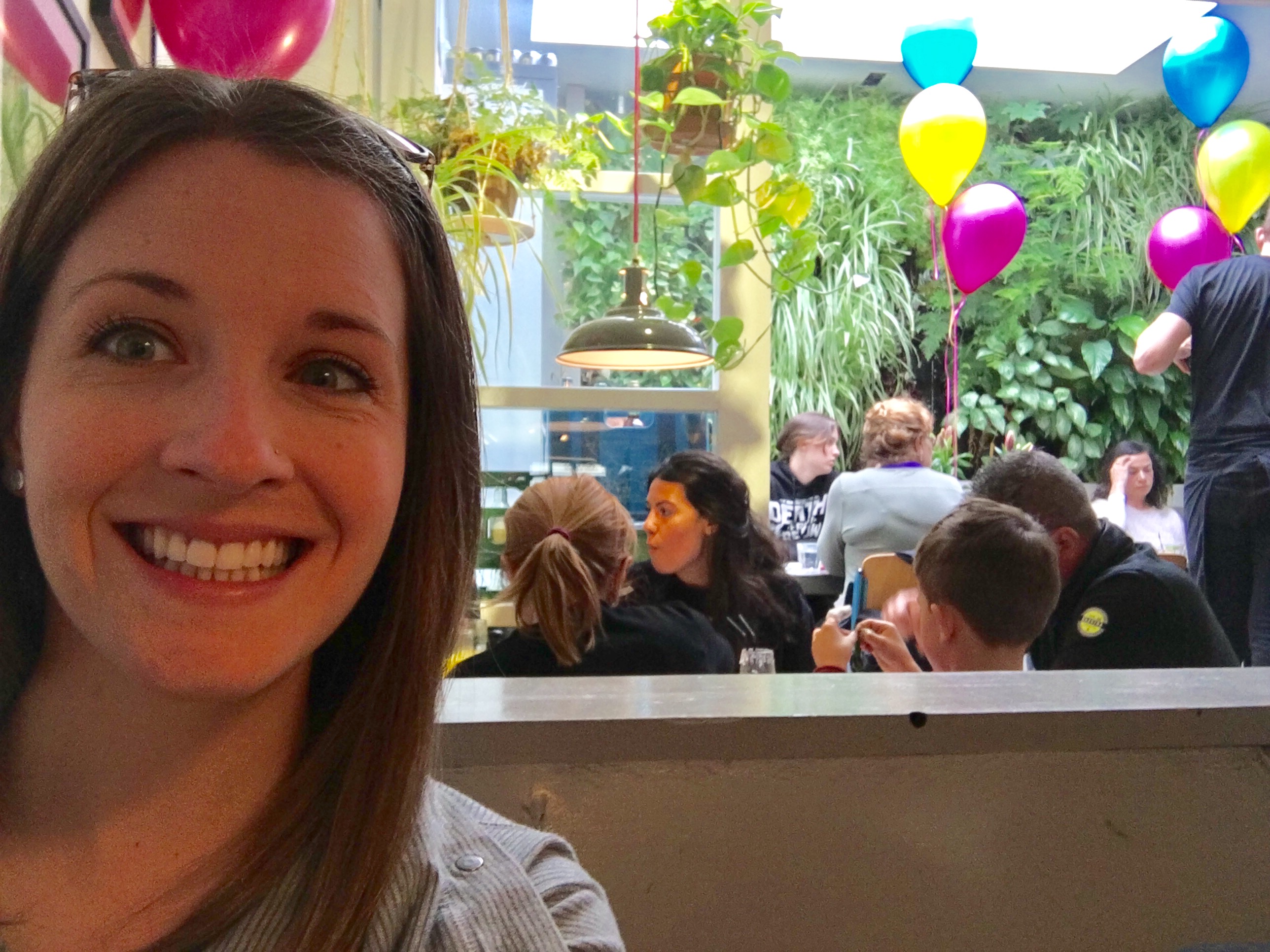 IMG_3079 Previous Next Published April 19, 2017 at 2576 × 1932 in We’re Back, Amsterdam. — Part 1 Brunch was a party here. Balloons everywhere.